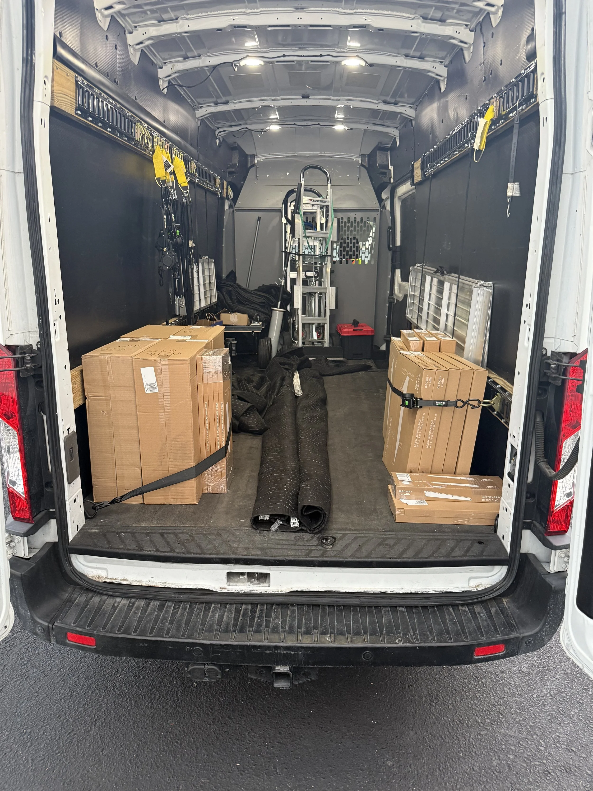 We offer same-day pickup and delivery, local moving assistance, and room-to-room placement. Our spacious Ford Transit High Roof Extended van can handle large or multiple items in a single trip — with additional trips available if needed.